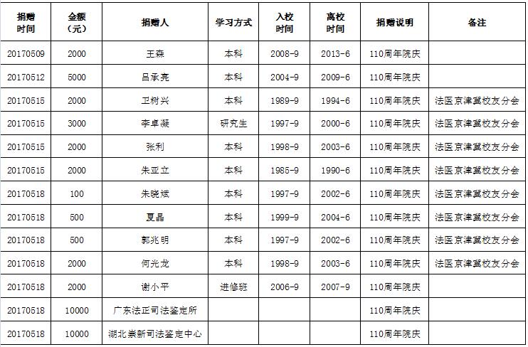衷心感谢法医学系校友对同济医学院的的关心和支持!