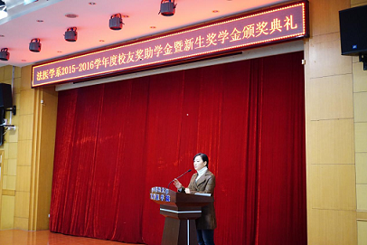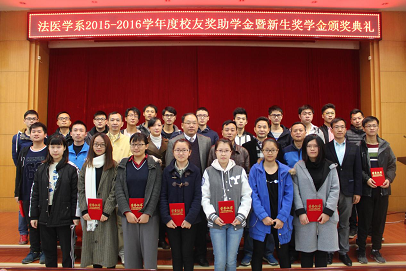 法医学系2015−2016学年度校友奖助学金暨新生奖学金颁奖典礼于11月12日上午,在同济医学院报告厅内隆重举行。伟德体育学生工作处副处长沈新民、武汉市刑侦局九大队副大队长阮海根校友、武汉市公安司法鉴定中心教导员朱传红校友应邀出席,法医学系主任黄代新、法医学系党总支书记、医学研究生处处长任学梅、系副主任周亦武、本科生辅导员孙清老师以及全体本科生和研究生参加了典礼。颁奖仪式由法医学系党总支副书记齐海波主持。