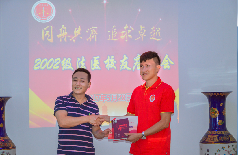 最后,任学梅书记代表法医学系接受校友捐赠。她指出,正值母校110周年华诞之际,岁月递嬗,百又十载,母校的发展离不开各位校友。母校与校友的关系堪比大树和树叶,校友不管到哪里都会得到母校的滋润,而母校的枝繁叶茂也要靠校友。此外,黄代新主任代表法医学系向各位校友赠送了同济医学院建院110周年院庆纪念画册和张玲莉教授主编的红宝书《法医临床学鉴定指南(第二版)》。