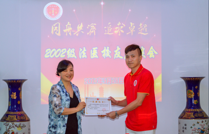 随后播放了校友自制视频。通过一张张照片、一幕幕场景再现了校友们当年的情谊,淳朴而本色。恰同学少年,珍贵的影像资料记录者每个人的青春岁月。十年时光,流逝的是时间,而对母校的情感却越发醇厚。从校友们的自我介绍中了解到,校友们大多从事公检法和临床工作,分散在北京、上海、湖北、浙江、湖南、山东、广西、云南、贵州和海南等地,当年羞涩的此间少年,如今已成为各自行业的中流砥柱。