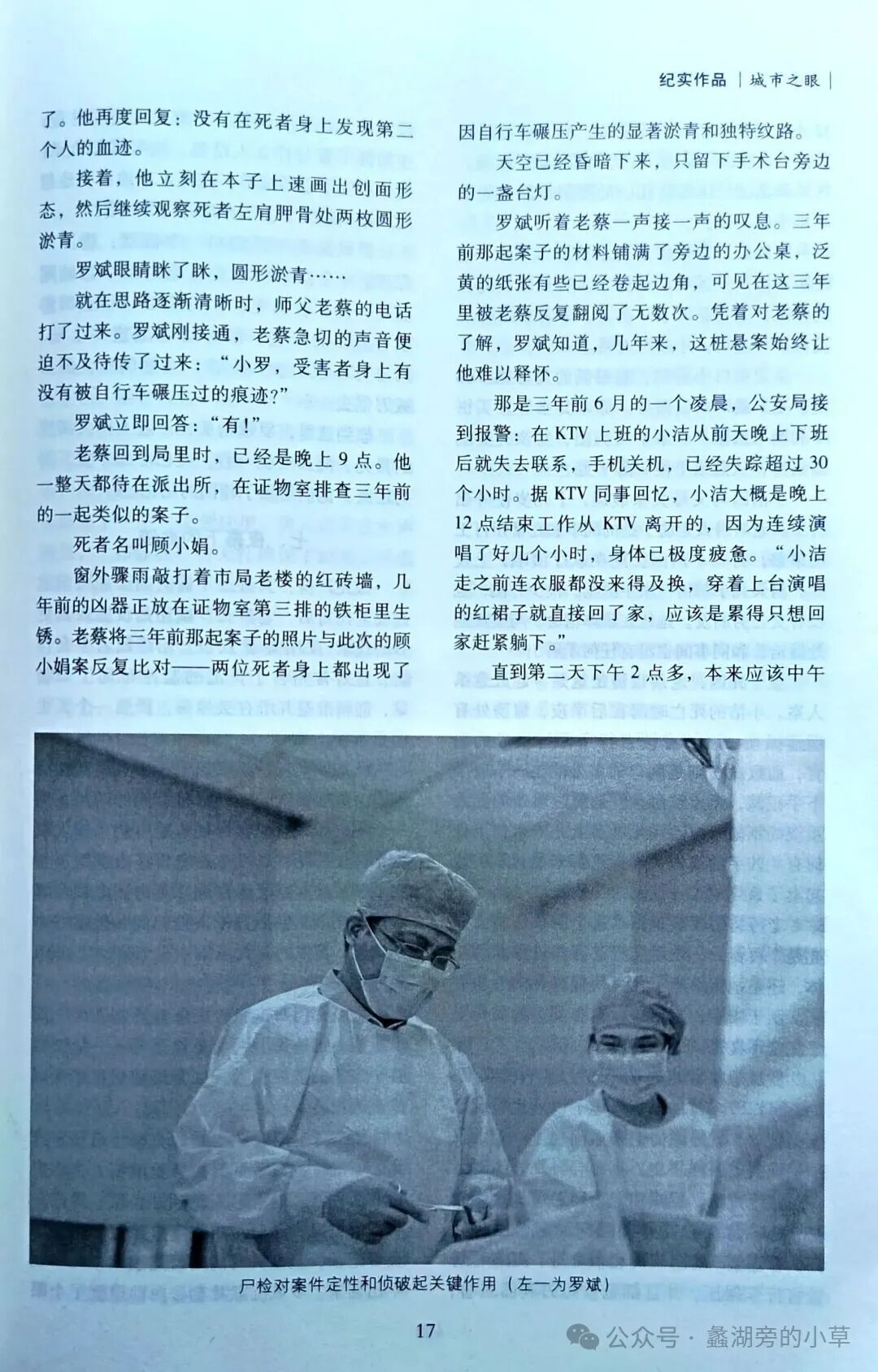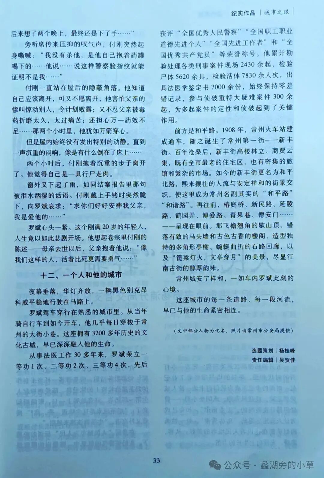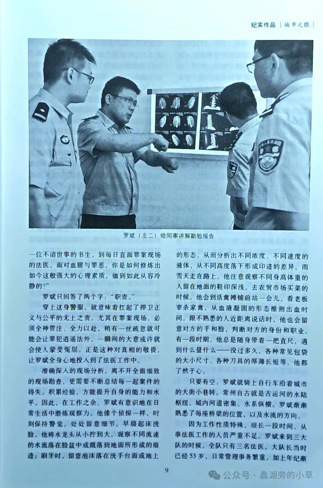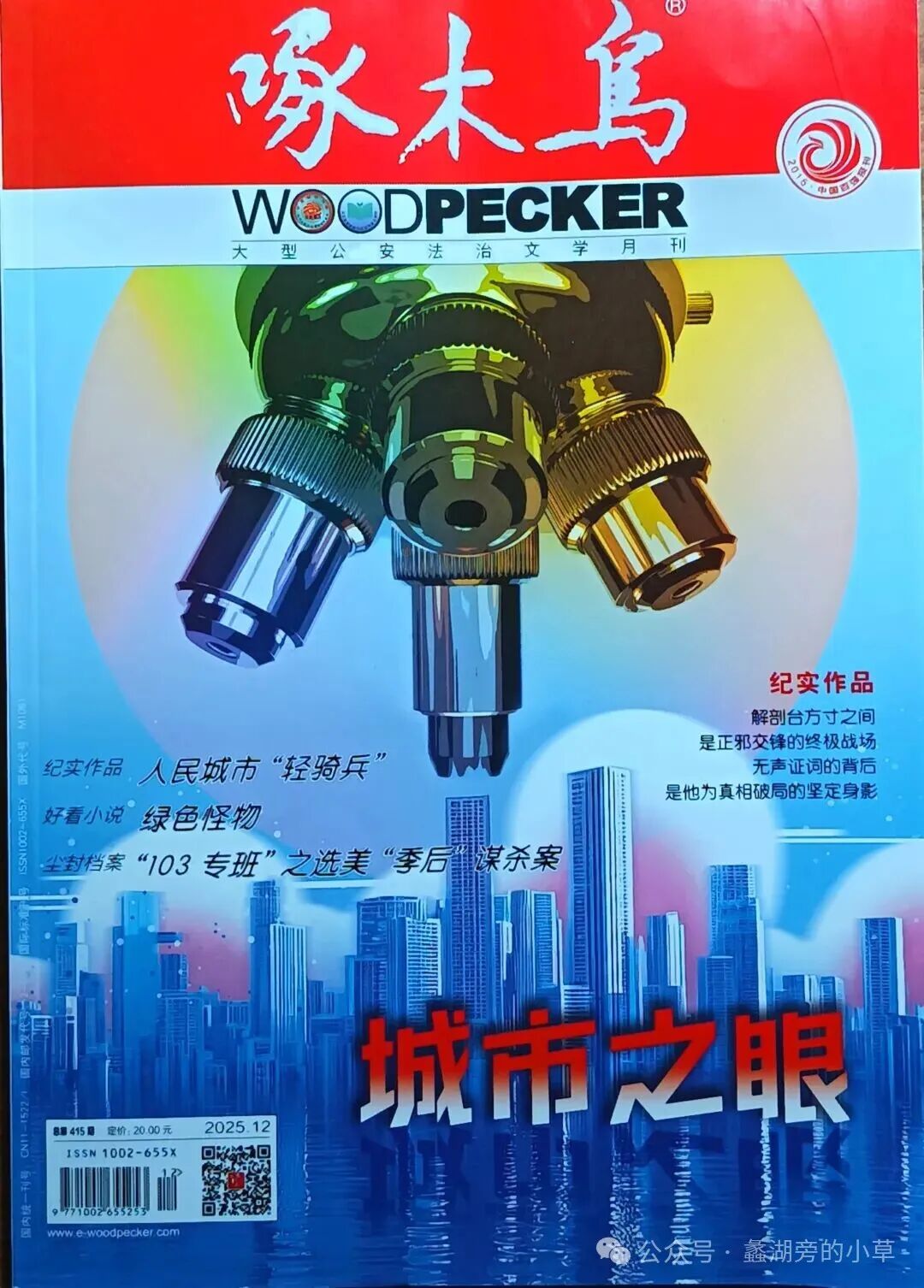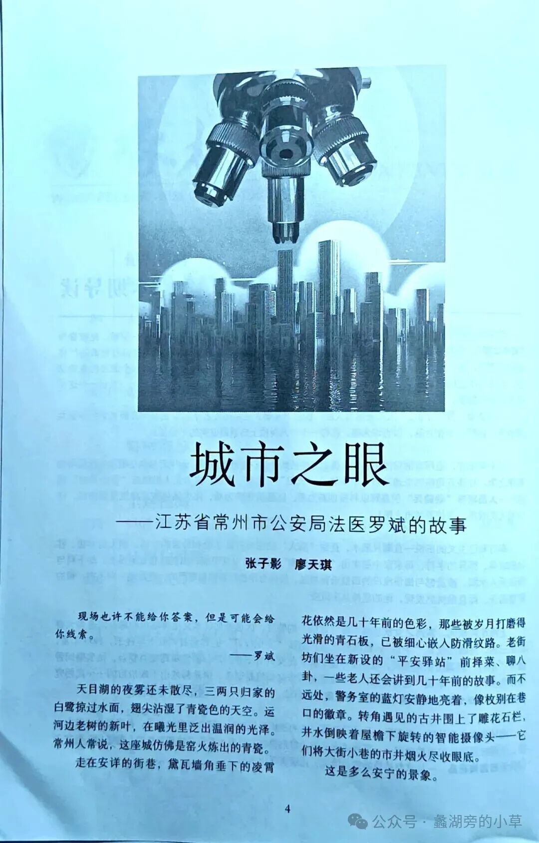 公安部杂志“啄木鸟”2025年第12期,长篇报告文学《城市之眼》,从第4页~33页,介绍了常州市公安局法医罗斌的事迹。