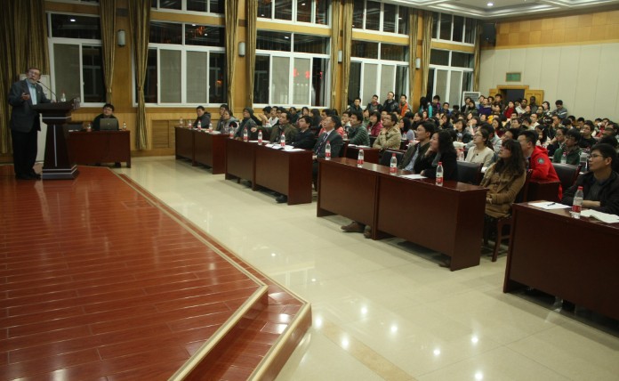访问期间,Kidd教授分别面向法医学系和医学院师生做了两场学术讲座。3月5日上午,Kidd教授在法医学系多媒体教室给全系师生作了题为 “Better SNPs for Better Forensic”的学术讲座。讲座中,他结合自己实验室的研究成果,对DNA单核苷酸多态性 (SNPs)遗传标记在个体识别、亲权鉴定、祖源鉴定、家系鉴定及表型鉴定中的应用价值做了介绍,并着重阐述了SNPs群体数据调查研究对法医学应用的重要性。Kidd教授还为法医学系师生介绍了群体遗传学研究的技术方法,并演示了其建立的SNPs基因数据库使用方法。法医学系师生认真聆听了讲座,并就SNPs祖源推断的伦理挑战、种群基因纯度的甄别等问题进行了交流。当晚,Kidd教授在学术报告厅为医学院师生做了题为“SNPs for Ancestry and Phenotype”学术讲座,介绍了SNPs对于祖源鉴定和表型推测的重要意义及其群体数据研究进展。讲座现场座无虚席,气氛活跃,来自全院不同学科的师生聆听了Kidd教授精彩生动的演讲,并与kidd教授进行互动交流。