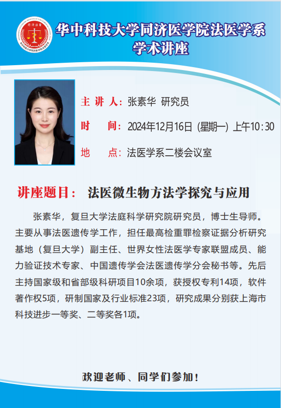地址:湖北省武汉市硚口区航空路13号,同济医学院法医学系103室