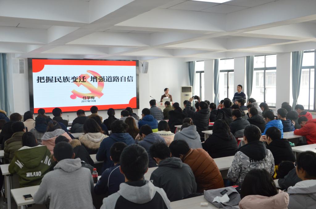 2017年12月17日上午,系党总支书记任学梅在七楼多媒体大教室为全系研究生、本科生进行了党的十九大精神宣讲,做了题为“把握民族变迁 增强道路自信”的专题党课。