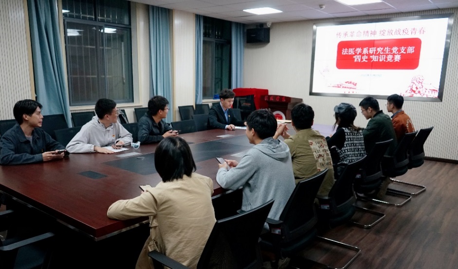 为深入学习贯彻习近平总书记关于党史、新中国史、改革开放史、社会主义发展史学习的重要讲话和指示精神,持续深化爱国主义教育,巩固深化“不忘初心、牢记使命”主题教育成果,教育引导全体学生在学思践悟中坚定理想信念,在奋发有为中践行初心使命,以实际行动迎接建党一百年。法医学系研究生党支部10月29日19:00于法医学系二楼会议室开展了“学四史 守初心”知识竞赛。