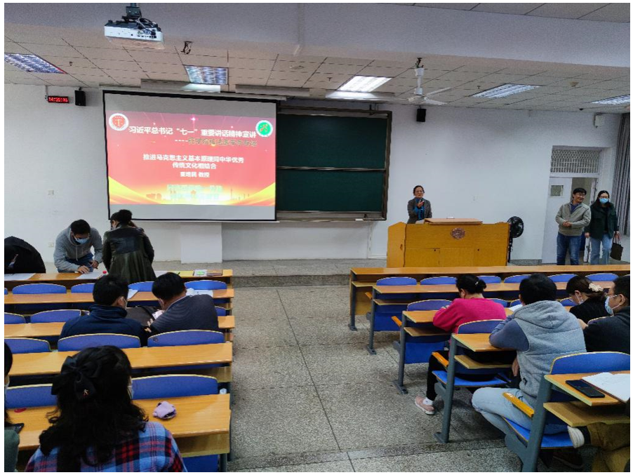 活动伊始,厉岩书记介绍了夏增民教授的有关情况。她指出,本次宣讲会是在建党一百周年之际,由学校统一组织的重大宣讲活动,报告内容丰富,意义深远,希望全体教师员工好好学习。