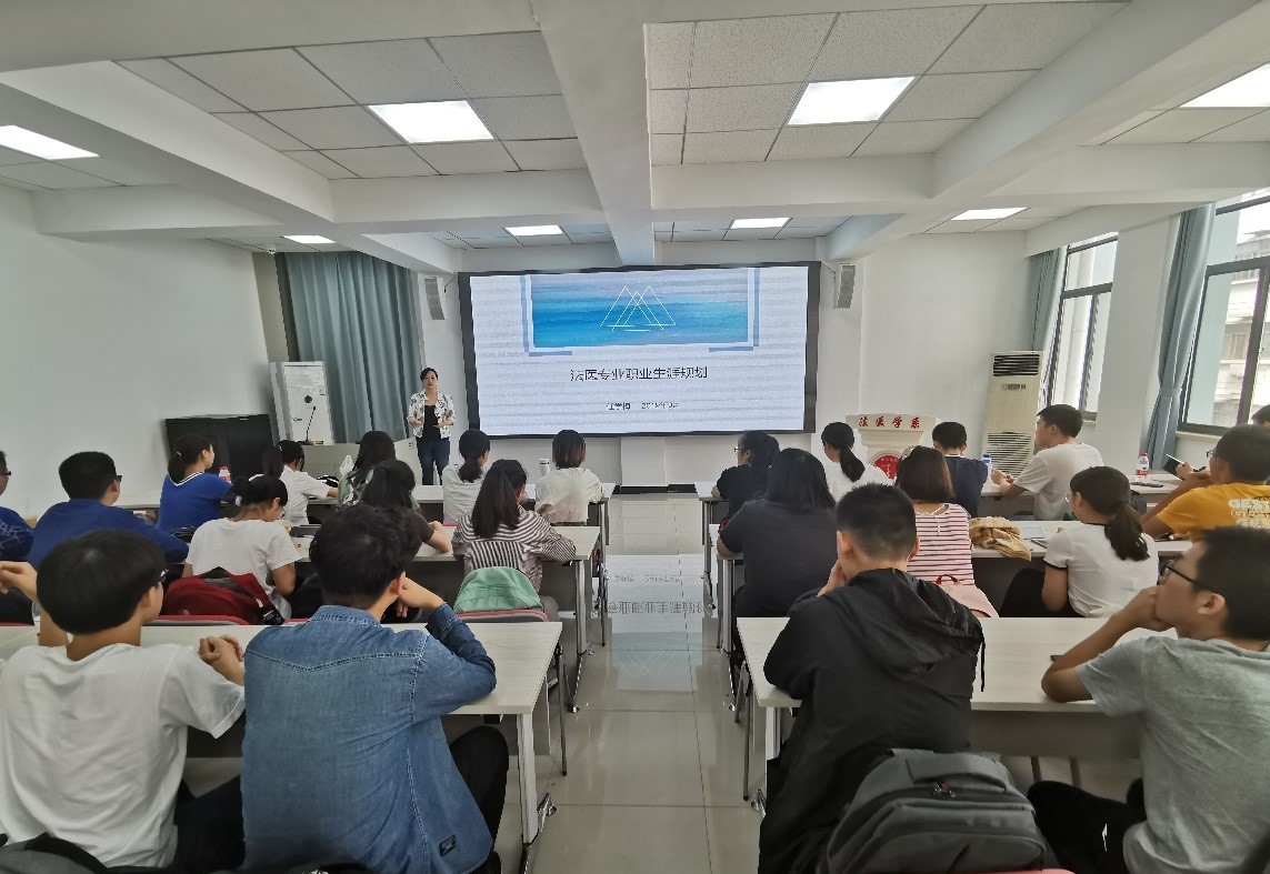 为帮助法医学子尽早树立职业生涯规划意识、提升职业生涯规划能力、培养学生计划执行良好习惯,同时也促进本科生进一步了解自己的专业和未来发展前景,法医学系于2019年9月19日上午在法医系大楼七楼多媒体教室举办了本科生职业生涯规划教育主题讲座,系党委书记任学梅为18级全体本科生进行了法医专业职业生涯规划指导。党委副书记齐海波主持了活动,辅导员孙清、夏述旭老师参加了活动。