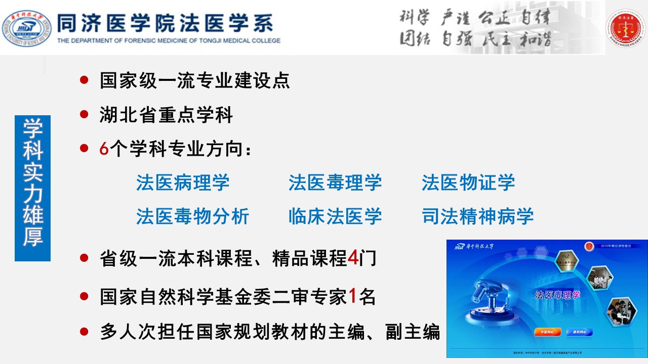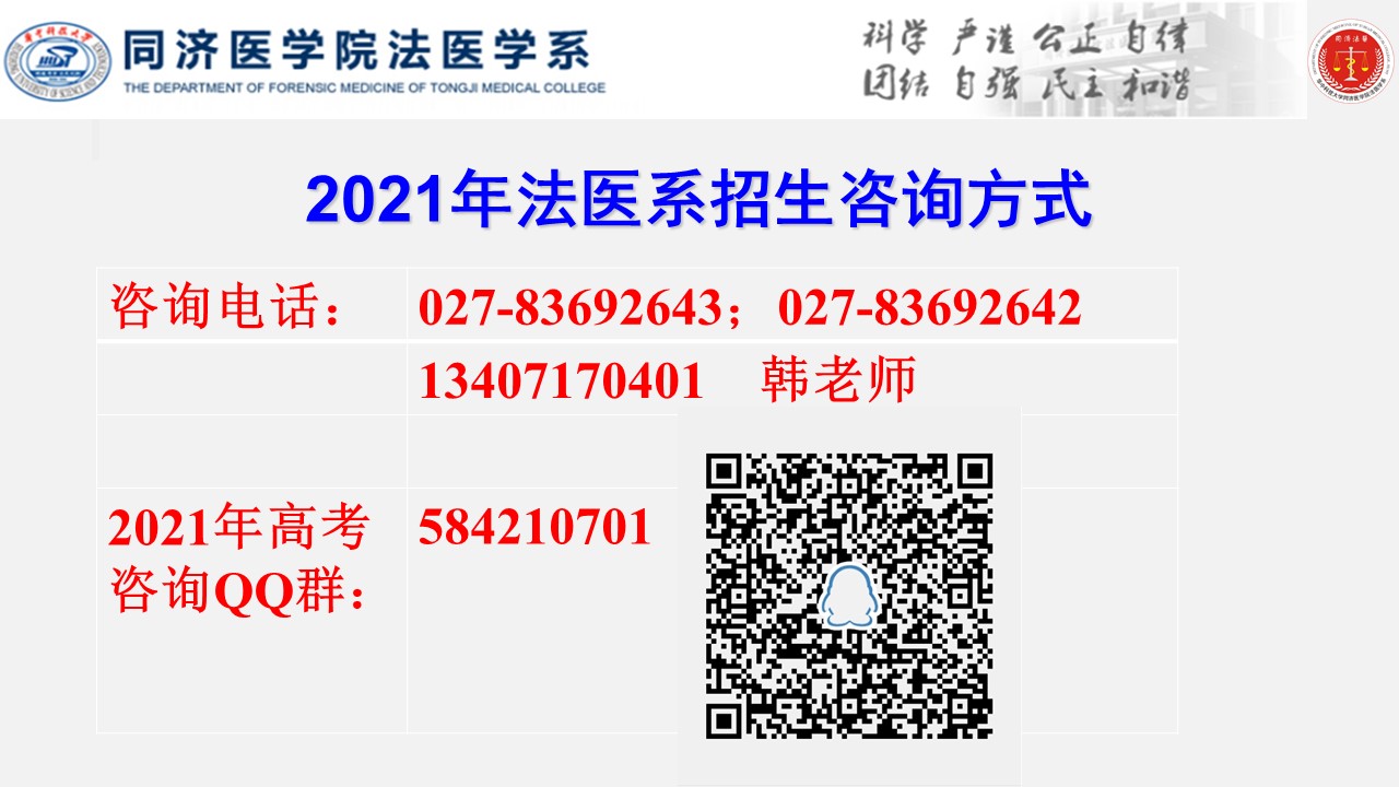 地址:湖北省武汉市硚口区航空路13号,同济医学院法医学系103室