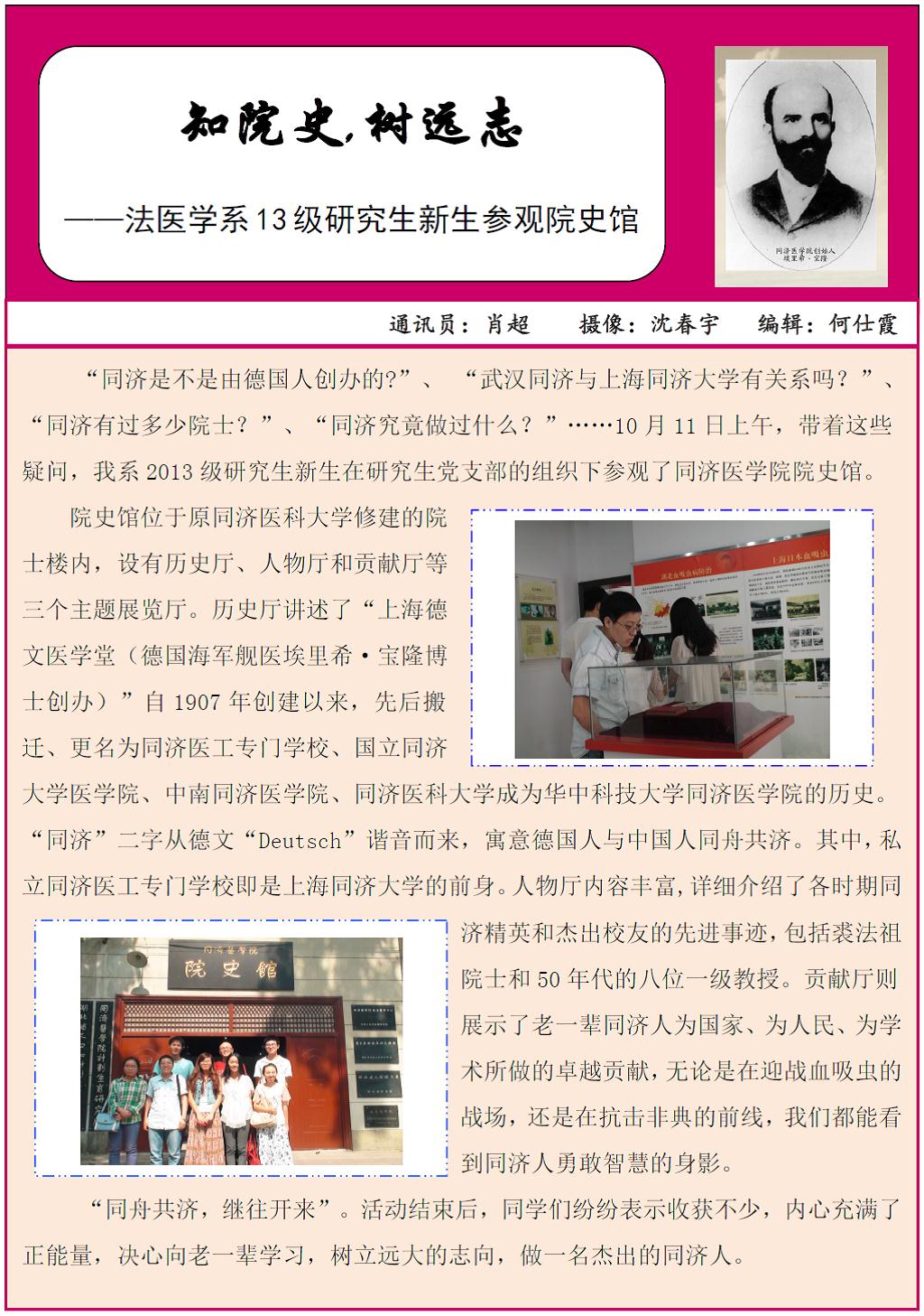 地址:湖北省武汉市硚口区航空路13号,同济医学院法医学系103室