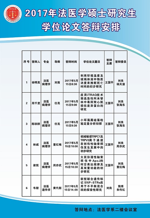 地址:湖北省武汉市硚口区航空路13号,同济医学院法医学系103室