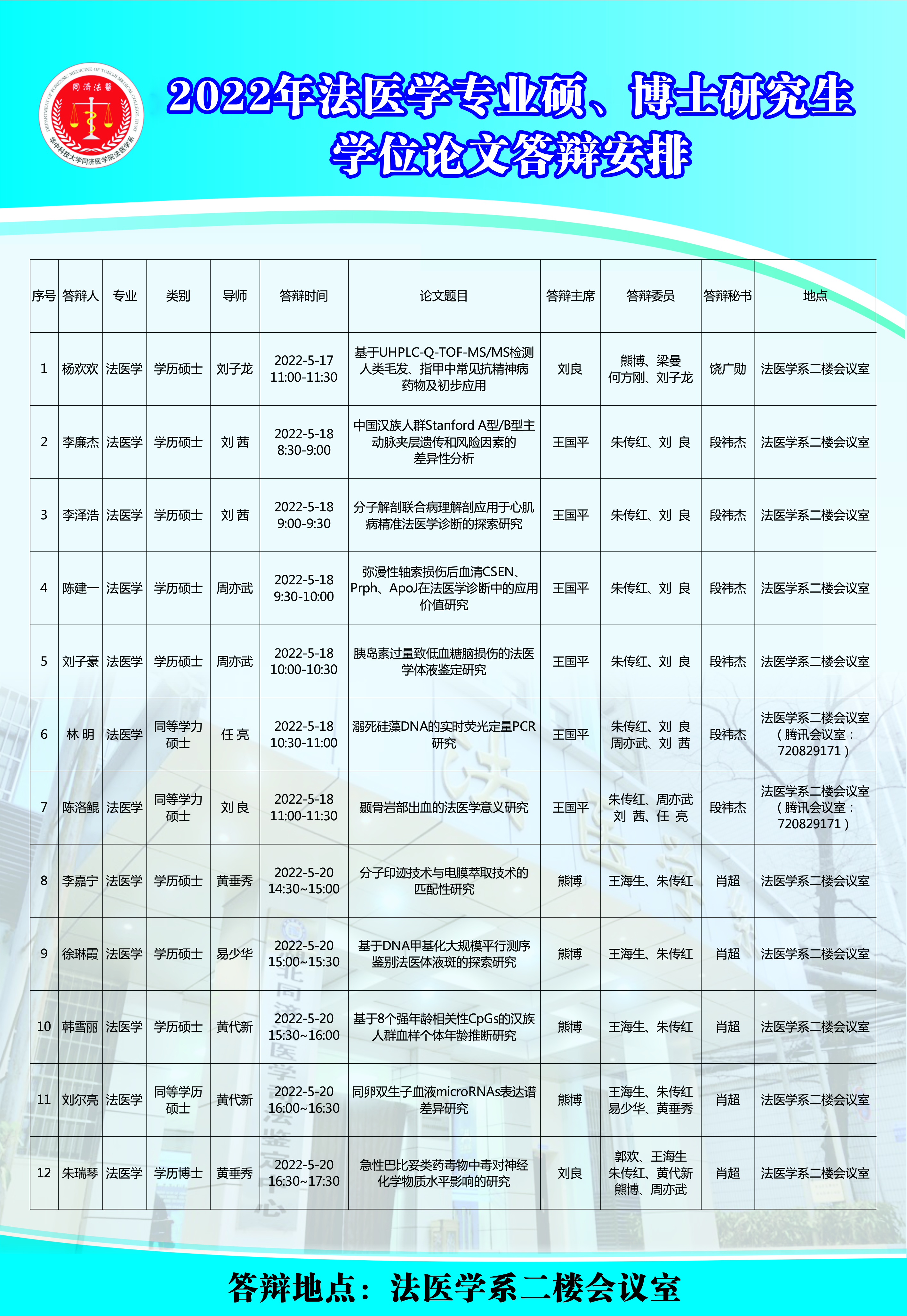 地址:湖北省武汉市硚口区航空路13号,同济医学院法医学系103室