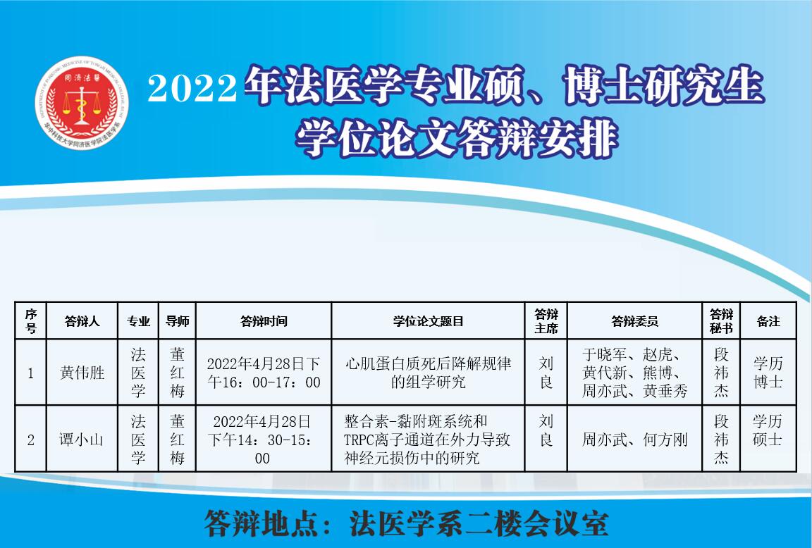 地址:湖北省武汉市硚口区航空路13号,同济医学院法医学系103室