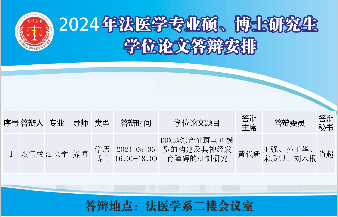 地址:湖北省武汉市硚口区航空路13号,同济医学院法医学系103室