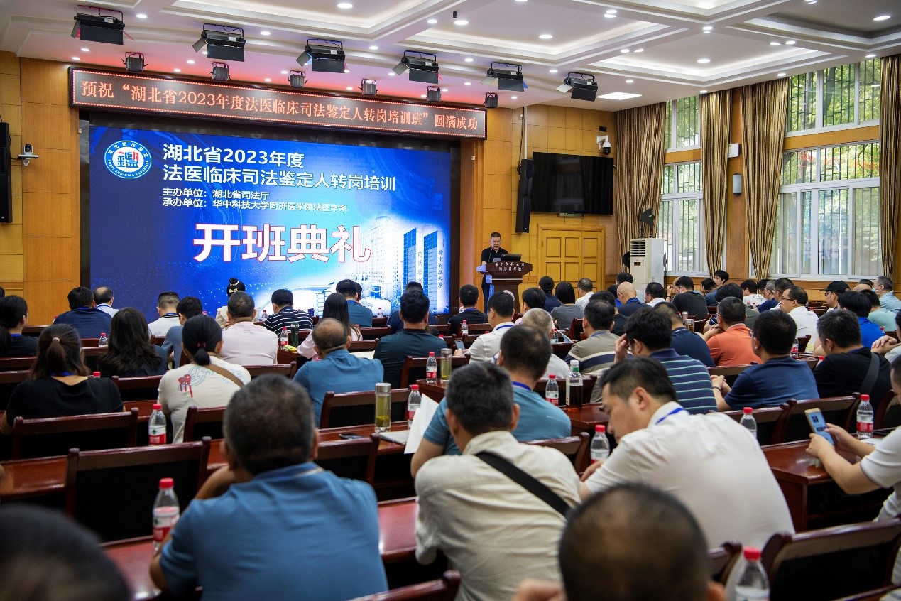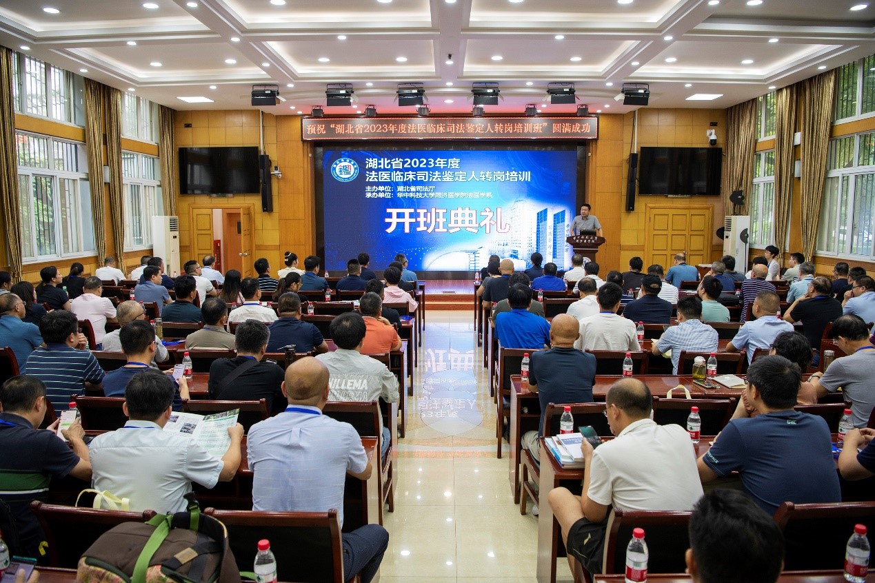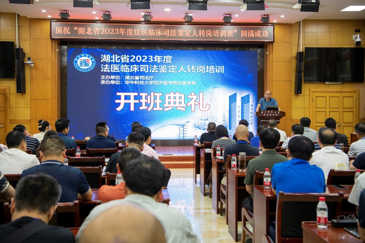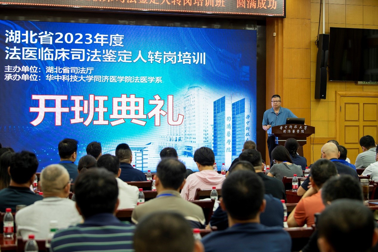 2023年8月14日,由湖北省司法厅主办,伟德体育同济医学院法医学系承办的2023年度法医临床司法鉴定人转岗培训班在同济医学院报告厅顺利举行开班典礼。湖北省司法厅公法处薛彦祝副处长、湖北省司法鉴定协会秘书长曾广定出席会议,来自全国各地的111名学员、法医学系领导和授课老师参与了本次开班仪式。仪式由法医学系主任熊博教授主持。