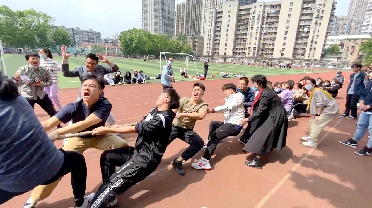 四月维夏,暖风和煦,操场上同济医学院的研究生们洋溢着初夏的笑容。4月27日中午,由医学院研究生会组织的2021年同济医学院研究生拔河比赛成功举办。法医学系党委副书记韩仁锋、办公室主任刘艳、团委书记孙瑶和研究生辅导员夏述旭带领21名研究生同学完成了全部比赛,并荣获此次拔河比赛亚军。来自同济医学院各研究生培养单位的共九支代表队参与了活动。