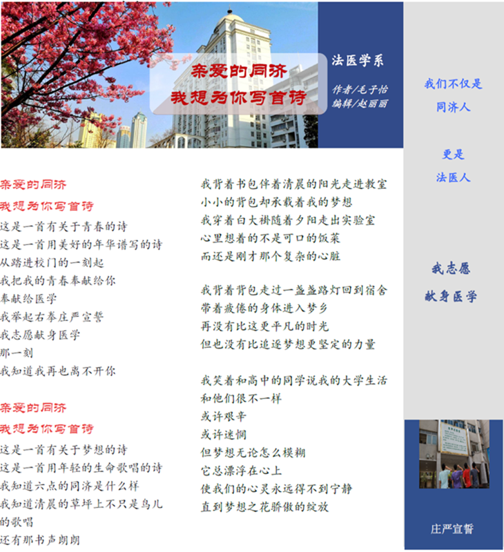 地址:湖北省武汉市硚口区航空路13号,同济医学院法医学系103室