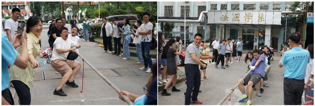 蝉鸣阵阵,骄阳似火,又是一年毕业季。2022年6月16日下午,在法医学系党委的领导下、研究生会组织下,法医学系“青春飞扬,扬帆起航”师生拔河比赛圆满举行。比赛延续了以往的传统,法医学系全体师生共同参与,并分为教职工代表队、毕业生代表队、本科生代表队、研究生代表队四支队伍参与比拼。