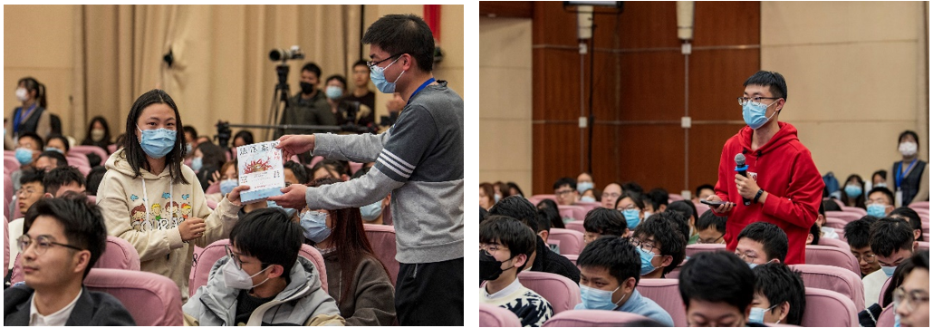 在面对面交流环节,意犹未尽的师生从多角度进行了提问:从秦明与妻子的伉俪情深,到对法医专业的理解、法医心理素质的培养、理论与实践孰重孰轻、未来人生规划等。秦明在一一作答之余,还不忘提醒在场的法医学子,当法医要学会自我保护,不仅是注意身体安全,更应该能经受住各种诱惑和考验,同时要在大灾大难面前迎难而上,他以完成世界首例新冠肺炎患者遗体解剖的同济法医刘良教授团队为例,鼓励大家用自己的专业知识负重前行、守卫人民。问答间隙,秦明还将自己亲笔签名的新书送给现场观众进行互动。最后,全体观众上台与秦明老师合影,报告会在掌声中圆满结束。