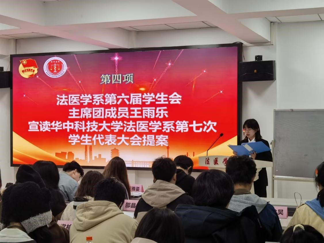 全体参会代表听取并审议通过了法医学系2023届学生会主席团成员王雨乐所做的《第七次学生代表大会提案工作报告》,提案主要涉及同学们较为关心的校园网络、课程安排、食堂建设、基础设施等方面的问题,细心关注同学们的急难愁盼和思想动态,并提出改进措施。