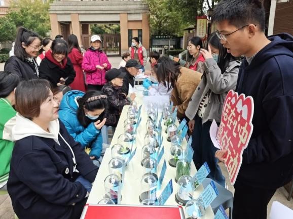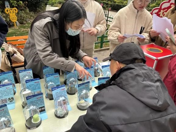 在宣讲台处,宣讲团设立了毒品知识讲解区和毒品知识问答区。毒品知识讲解区内摆满了大麻、冰毒、摇头丸等传统毒品和“邮票”“跳跳糖”等新型毒品模型。居民们对这些模型很是感兴趣,在宣讲团成员的讲解下,纷纷惊叹“这居然也可能是毒品”。了解完毒品相关知识,居民们前往有奖知识问答区检测“学习成果”,收获许多暖冬小礼品。通过宣讲与互动,宣讲团将禁毒意识再一次牢牢地印在居民心中。