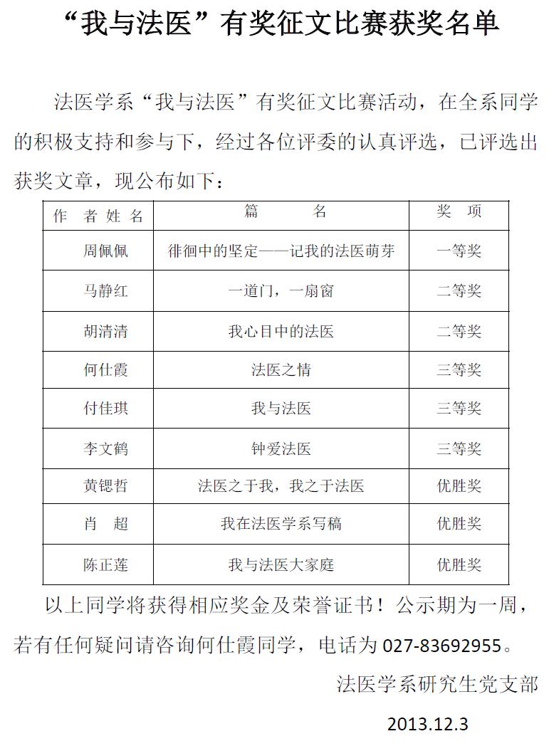 地址:湖北省武汉市硚口区航空路13号,同济医学院法医学系103室