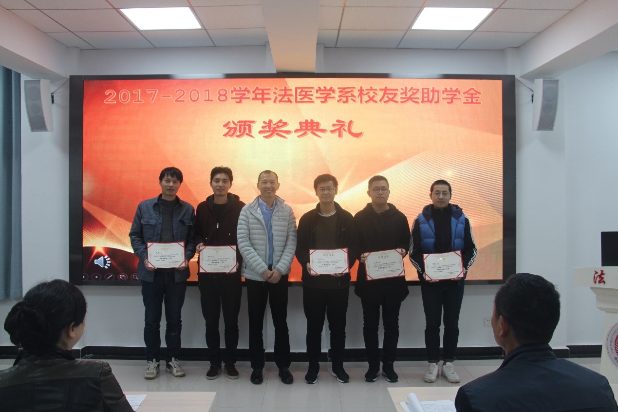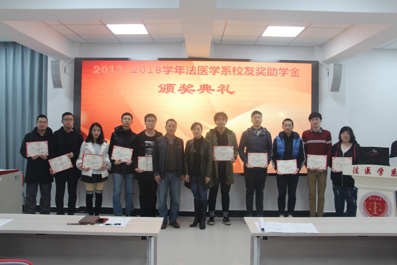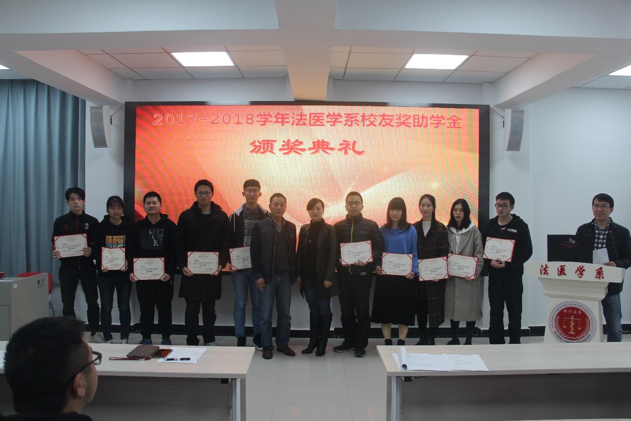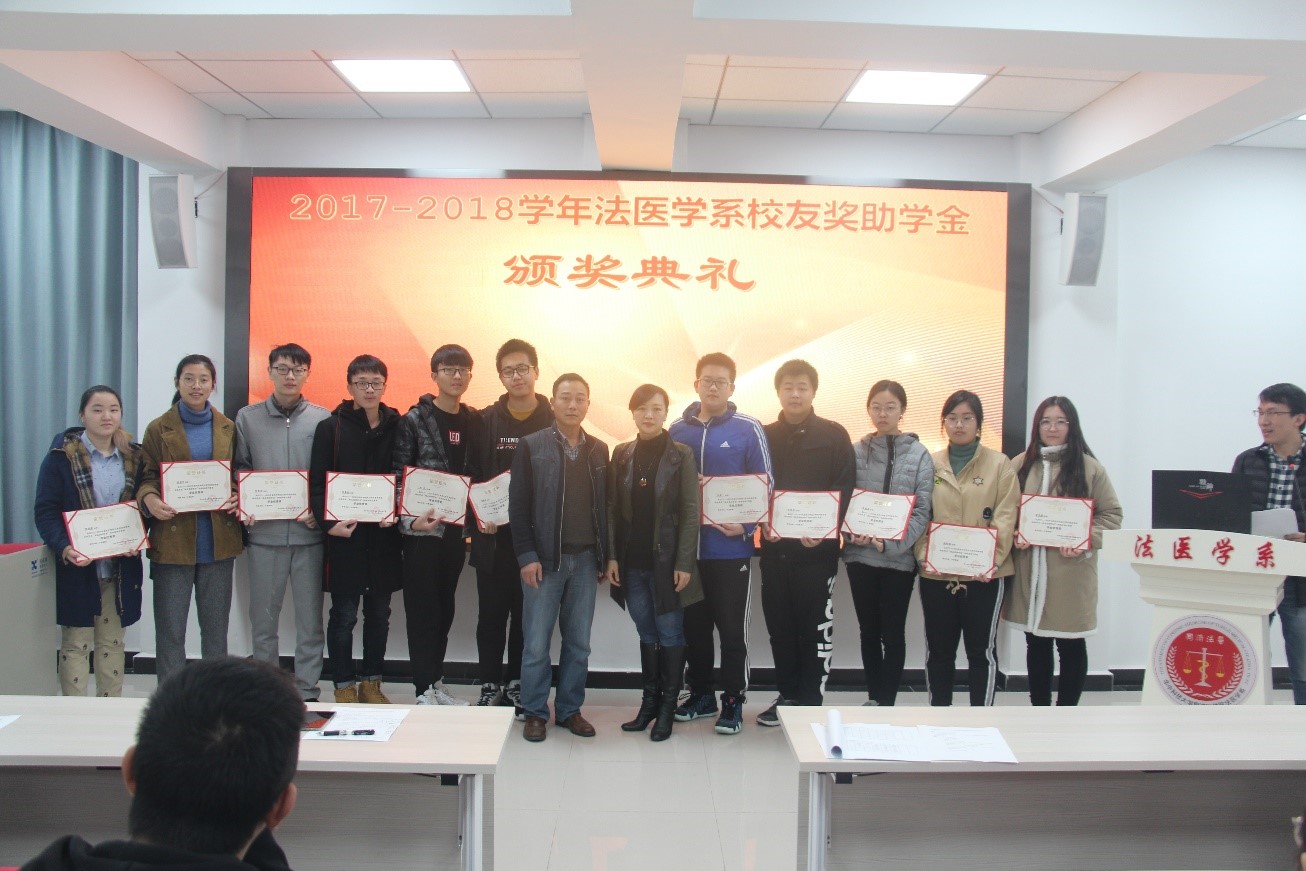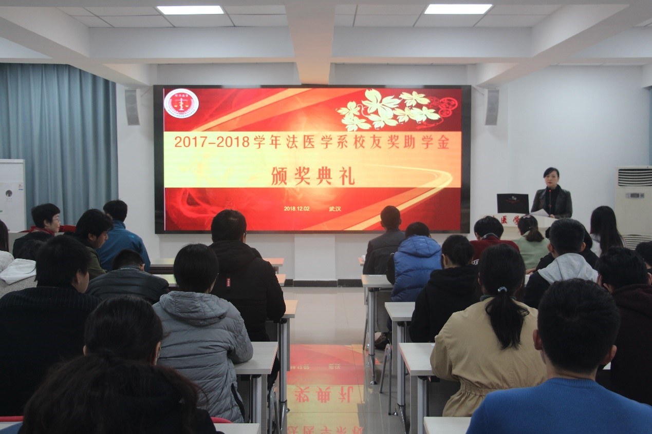 12月2日上午,2017–2018学年度法医学系校友奖助学金暨新生奖学金颁奖典礼在法医学系七楼多媒体大教室举行。法医学系主任黄代新、党总支书记任学梅、副主任周亦武、工会主席易少华、办公室副主任刘艳、辅导员老师及全系本科生和研究生参加了此次典礼。颁奖仪式由系党总支副书记齐海波主持。