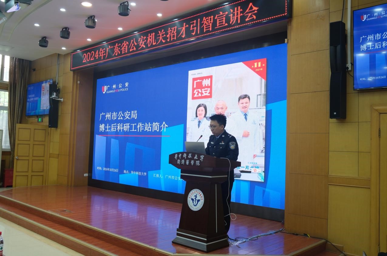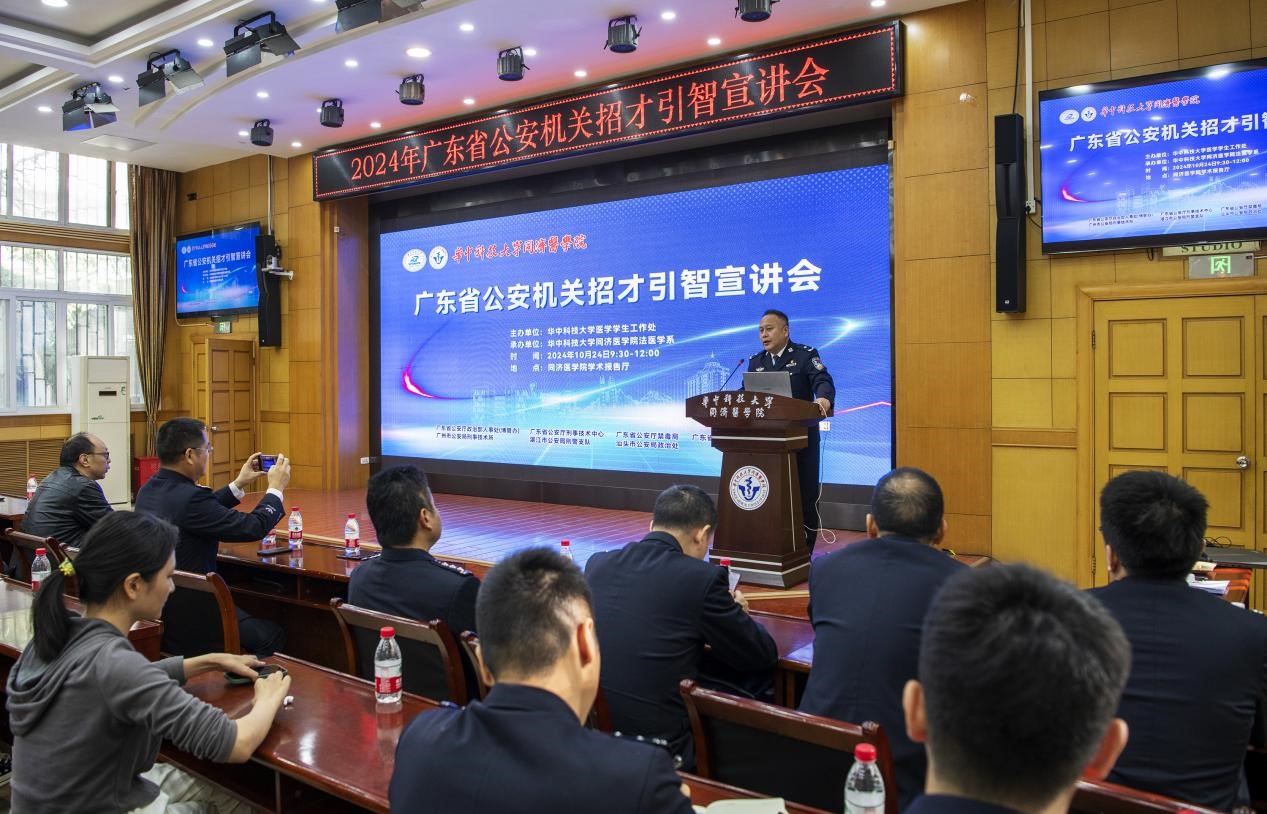 2024年10月24日上午,应法医学系邀请,广东省公安厅率领当地公安机关来到伟德体育同济医学院报告厅,举行招才引智专场宣讲。医学学生工作处齐海波同志参加宣讲会并致词,对广东省公安机关领导表示了热烈的欢迎。