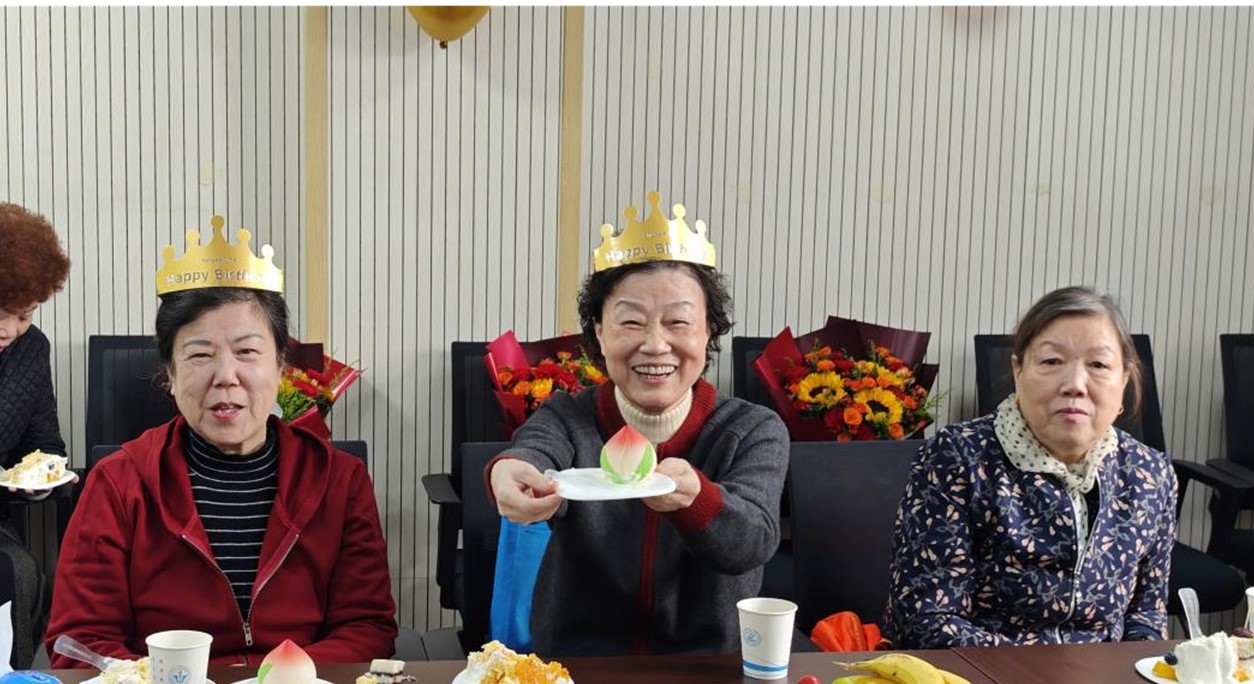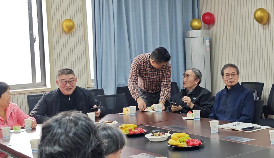 在众人的祝福声中,寿星们共同吹灭生日蜡烛、切开生日蛋糕,甜香四溢间,暖意充盈整个会议室。年轻教师们主动为前辈们分发象征健康长寿的寿桃蛋糕,为寿星佩戴生日帽,其间还亲切询问退休老师们的生活近况,现场氛围融洽而热烈。