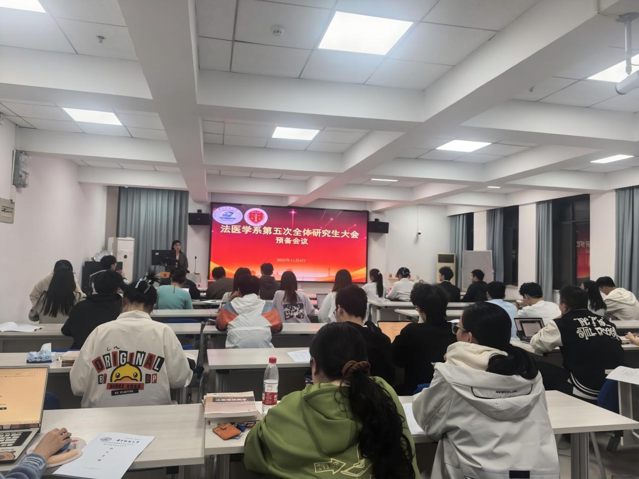 11月4日晚,伟德体育同济医学院法医学系第五次全体研究生大会在系七楼多媒体教室隆重举行。本次大会系统回顾了过去一年的研究生会工作,并成功选举产生新一届主席团成员。法医学系党委副书记韩仁锋、研究生辅导员刘红海、校研究生会主席团成员王家雨、兄弟院系研究生会代表及系全体研究生出席会议。